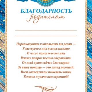 Благодарность родителям для принтера А4 сине-желтая рамка 9-19-485