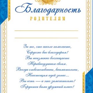 Благодарность родителям для принтера А4 сине-золотая рамка 9-19-577