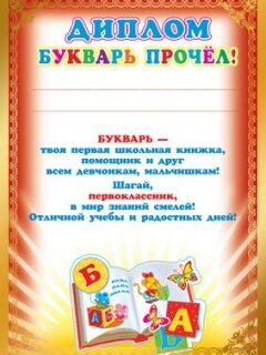 Настал великолепный час:Окончен самый первый класс!И память славная о том —Вот этот красочный диплом! Минимальная партия отгрузки:1