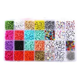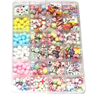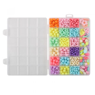 Набор творческий Бусины в пластик.контейнере (24 отдела) 19*13см + леска Mazari M-20061