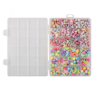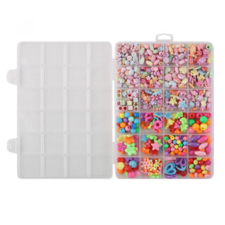 Набор творческий Бусины в пластик.контейнере (24 отдела) 19*13см + леска Mazari M-20058