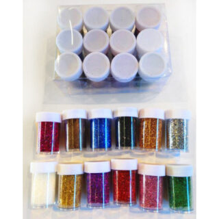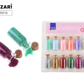 Декор для творчества Блестки (Набор 12 цветов по 9гр) в бутылочках с крышкой Mazari M-20016