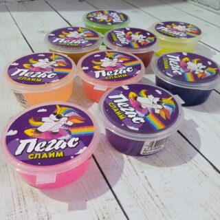 Слайм в банке 50гр Прихлоп Пегас с блестками неон, голография