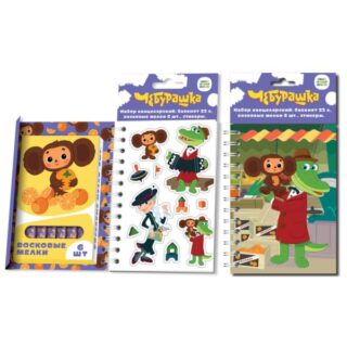 Блокнот А6 32л спираль Чебурашка (Набор + наклейки + мелки восковые 6цв) CBJS-UA1-320-H