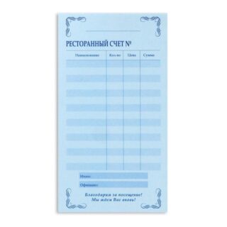 Бланк Ресторанный счет А6 50л офсет самокопирующийся 2-хслойный