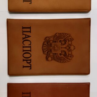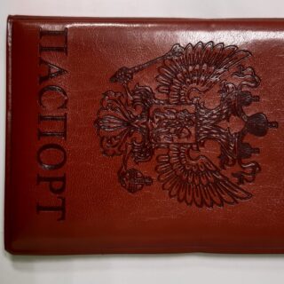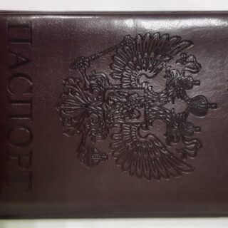 Обложка для паспорта кожзам Орел Полад гладкая коричневая №9
