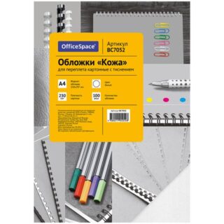 Обложка для переплета А4 230мк 100л картон белые “под кожу” Офис-спейс BC7052