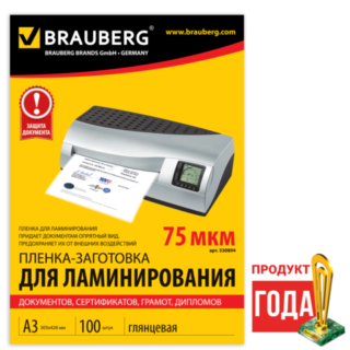 Пленка для ламинирования А3 75мк глянцевая 100л Brauberg 530894
