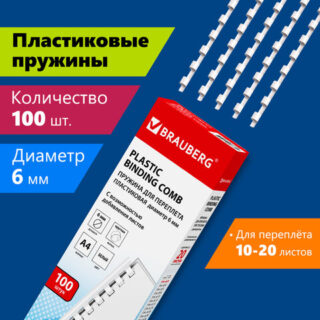 Пружины для переплета 06мм 100шт белые (сшивает 10-20л) 530808
