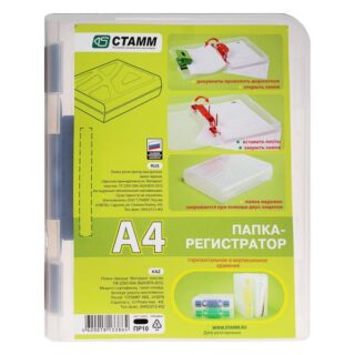 Папка-регистратор А4 70мм пластик цвет прозрачный на защелках 317*270*73мм Стамм ПР10