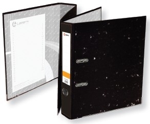 Папка-регистратор А4 75мм мрамор цвет черный с мет.уголком Lamark AF0700-BK1 (собранная)