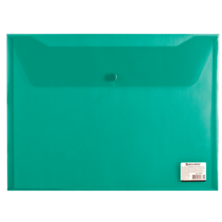 Папка-конверт с кнопкой А4 0,15мм зеленая тонированная Brauberg 221635