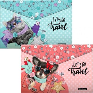 Папка-конверт с кнопкой А4 0,16мм с рисунком Mini Traveler ErichKrause 55907 (питомец-путешественник