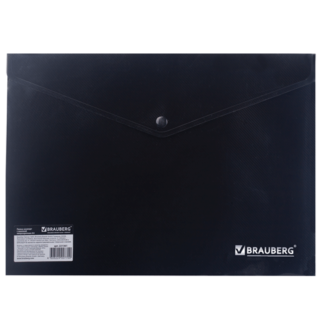 Папка-конверт с кнопкой А4 0,20мм черная непрозрачная плотная Brauberg 221361
