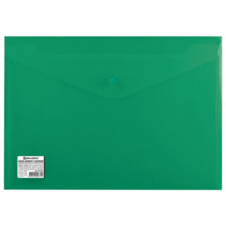 Папка-конверт с кнопкой А4 0,20мм зеленая непрозрачная плотная Brauberg 221363
