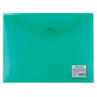 Папка-конверт с кнопкой А5 0,18мм прозрачная зеленая Brauberg 224025