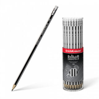 Карандаш с ластиком дерево ErichKrause Megapolis 45486 Полоска черно-серая шестигранный НВ