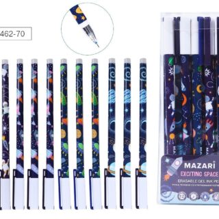 Ручка пишет-стирает гелевая Mazari Space синяя 0,5мм M-5462 игольчатая, цветной корпус (космос)