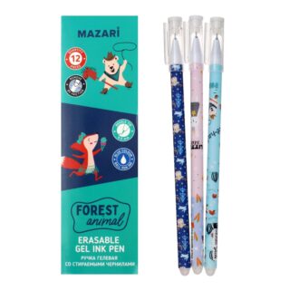Ручка пишет-стирает гелевая Mazari Forest animal синяя 0,5мм M-5436 игольчатая, цв.корпус (животные)