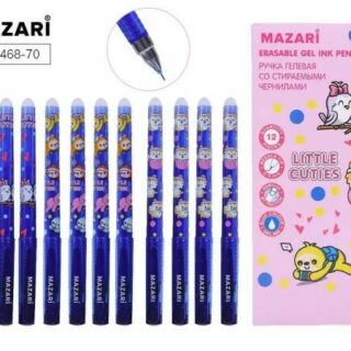 Ручка пишет-стирает гелевая Mazari Little cuties синяя 0,5мм M-5468 игольчатая (милые животные)