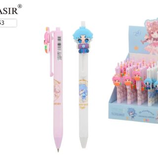 Ручка-игрушка Аниме (девочка/мальчик) Basir JD-2253 синяя 0,5мм автомат., фигурка на корпусе