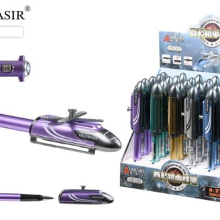 Ручка-игрушка Вертолет с фонариком A-21-S длина 18см, игольчатая, синяя 0,5мм, ассорти
