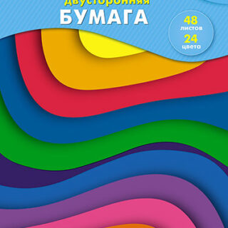 Бумага цветная А4 двусторонняя 48л.24цв. мелованная (60гр) Разноцветные волны С2816-43 в папке
