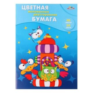 Бумага цветная А4 двусторонняя 48л.24цв. мелованная (60гр) Веселые друзья С2816-41 в папке