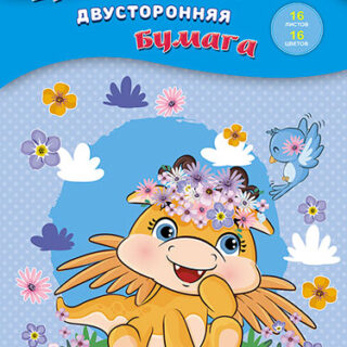 Бумага цветная А4 двусторонняя 16л.16цв. немелованная (50гр) Динозаврик С4443-09 скрепка