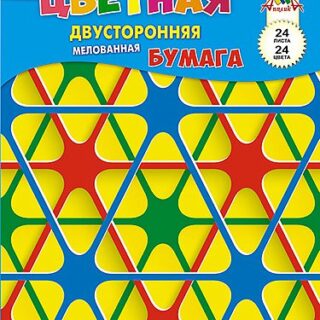 Бумага цветная А4 двусторонняя 24л.24цв. мелованная (60гр) Цветная абстракция С9598-02 скрепка