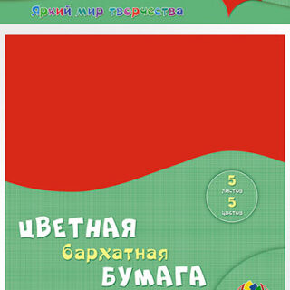 95,70 ₽Add to cartЦветная бархатная бумага, 5 листов, 5 цветов. Формат А5. Внутренний блок -бархатная бумага, 140 г/м2.