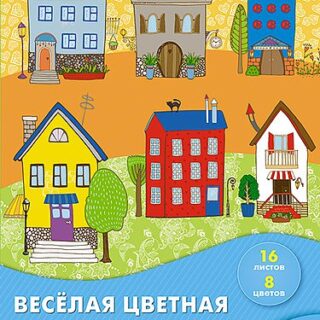 Бумага цветная с рисунком А4 16л.08цв. мелованная Домики С2803-10 скрепка, две стороны-цвет/рисунок