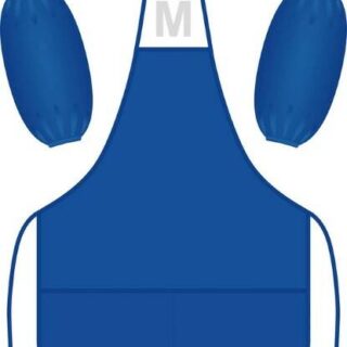 Изготовлен из водоотталкивающей ткани. Размер фартука S (39х49 см), два кармана. Размер нарукавников 25х16 см.