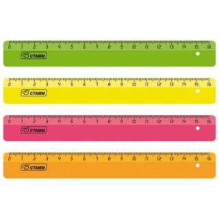 Линейка пластик 16см цветная неон яркий Стамм ЛН01