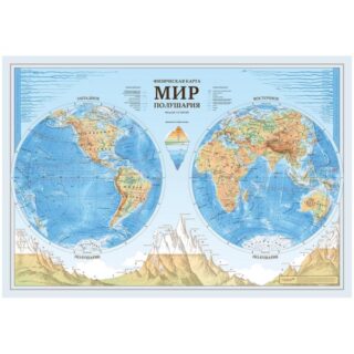 Карта настенная Карта Мира Полушария физическая 1:37млн КН090 (101*69 см) Globen