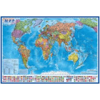 Карта настенная Карта Мира политическая с флагами 1:32млн КН040 (101*70 см) интеракт.ламинир. Globen
