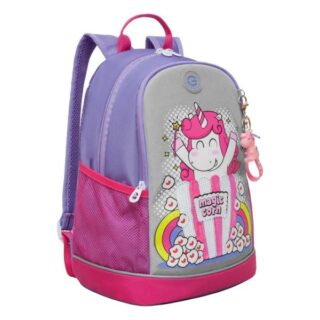 Рюкзак школьный 19л Grizzly женский Единорожка фиолетово-серый, жестк.спинка 28*38*18см RG-363-1