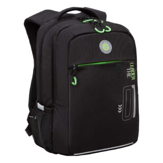 Рюкзак школьный 19л Grizzly мужской 01 черно-салатовый, анатом.спинка 26*39*19см RB-456-2