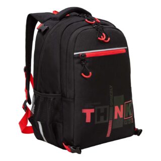 Рюкзак школьный 18л Grizzly мужской Think черно-красный, анат.спинка 28*39*17см (+мешок) RB-458-1