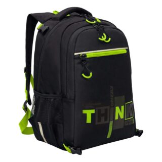 Рюкзак школьный 18л Grizzly мужской Think черно-салатовый, анат.спинка 28*39*17см (+мешок) RB-458-1