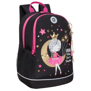Рюкзак школьный 19л Grizzly женский Девочка в короне черно-фуксия, жестк.спинка 28*38*18см RG-463-1