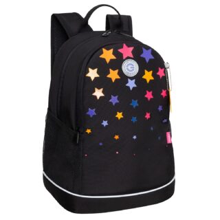 Рюкзак школьный 19л Grizzly женский Звездочки черный, жестк.спинка 28*38*18см RG-463-4