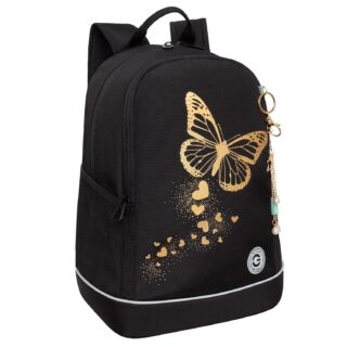 Рюкзак школьный 19л Grizzly женский Бабочка черный, жестк.спинка 28*38*18см RG-463-5