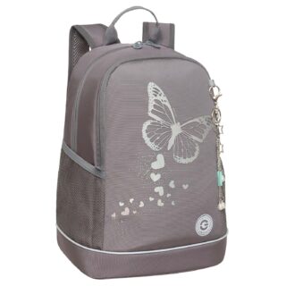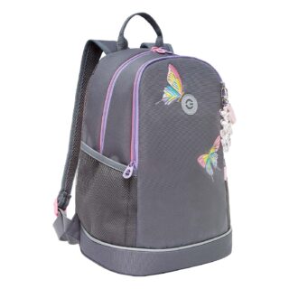 Рюкзак школьный 19л Grizzly женский Бабочка серый, жестк.спинка 28*38*18см RG-463-5