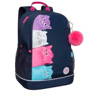 Рюкзак школьный 19л Grizzly женский Кошки синий, жестк.спинка 28*38*18см RG-463-6