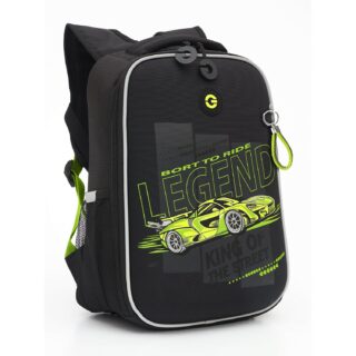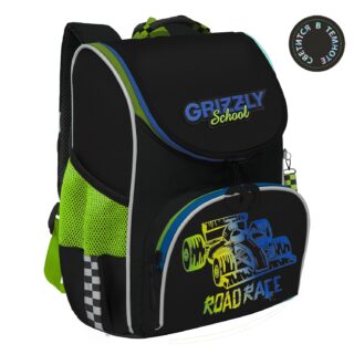 Ранец анатомическая спинка 15л Grizzly мужской Машина черно-салатовый 26*37*16см RAw-497-6