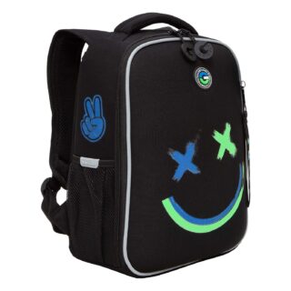 Ранец анатомическая спинка 15л Grizzly мужской Смайл черно-салатовый 26*37*16см RAw-497-2