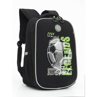 Ранец анатомическая спинка 15л Grizzly мужской Футбольный мяч черно-салатовый 26*37*16см RAw-497-9