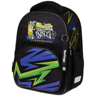 Ранец анатомическая спинка 14л Berlingo мужской Street vibe черно-зеленый 36*28*14см RU07208