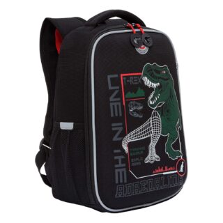 Ранец анатомическая спинка 15л Grizzly мужской Динозавр черно-красный 26*37*16см RAw-497-10